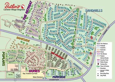 The Butlins Caravan Village is accessible via the Day Visitors entrance to Butlins (opposite side of the road to the main Butlins